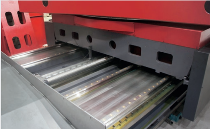 - 行程長達(dá)5米的工作臺(tái)由帶行星齒輪箱和滾珠絲杠的伺服電機(jī)控制。
